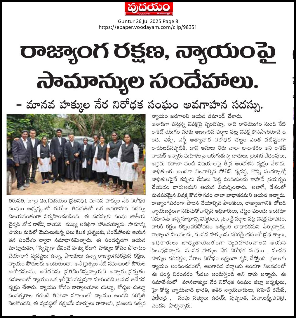 Gallery Roar for Justice Help to Manipur Meeting in Vizag 2024 Press meet in Warangal Legal Awarness By Chairman Legal Camp at GK Veedhi Chairman With Orphans awareness prog. at Uppada Awarenss Prog.at Hanamkonda HRACA Advocats Roar for Justice HRACA Chairman BRN HRACA Logo Ananthagiri Mandal team Awareness prog.Ananthagiri Odisha State Committee HRACA AWARDS 2025 Team Speacil Team of HRACA Hraca Committee of EG Dist. Leagally guide the Victims HRACA 2018 team Hyd Chairman with Orphans Chairman of HRACA ASR District Team HRACA Team at Wrangal Awareness Camp Vizag HRACA Team Sirpur Kagaz Nagar Cloths distributing to poor Cloths distributing to poor HRACA Team of Pitapuram HRACA Team of Siddipet oppo_32Cloths distributing to poor Cloths distributing to poor Cloths distributing to poor Cloths distributing to poor Cloths distributing to poor Cloths distributing to poor Cloths distributing to poor Lgal Awareness Prog.. Karnataka HRACA Delhi Team Cloths distributing to poor Cloths distributing to poor Press meet at Warangal Boda Rakesh Naik High Court Advocate Boda Rakesh Naik High Court Advocate Boda Rakesh Naik High Court Advocate Press meet Warangal HRACA Manipur team Helped to manipur Helped to manipur oplus_0 Helped to poor Helped to Poor Hraca Advocates Hraca Advocates Chirman Rakesh Naik ID Cards Distribution